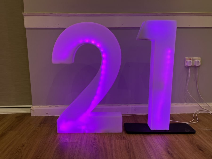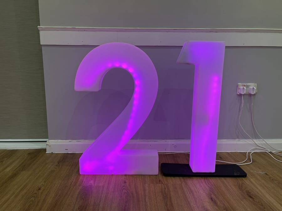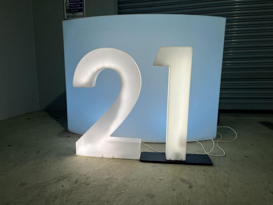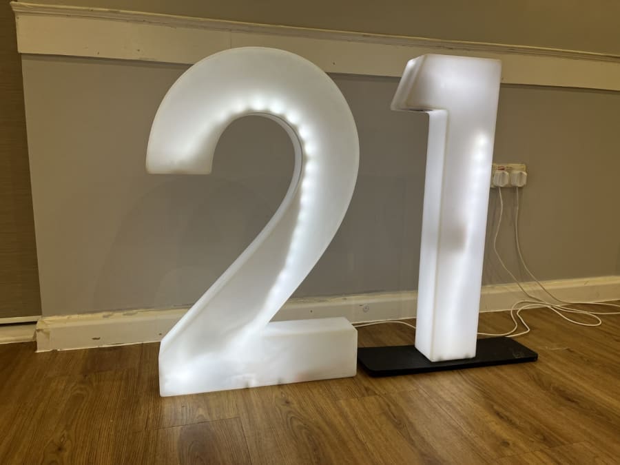 LED Light Up Number 21 for hire in Buckinghamshire, Berkshire, Middlesex and Oxfordshire.