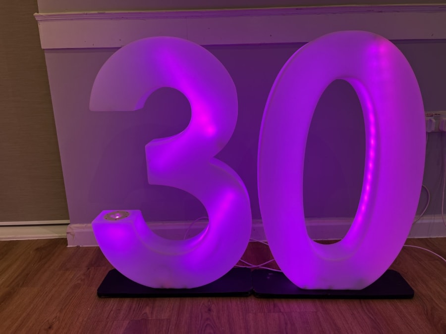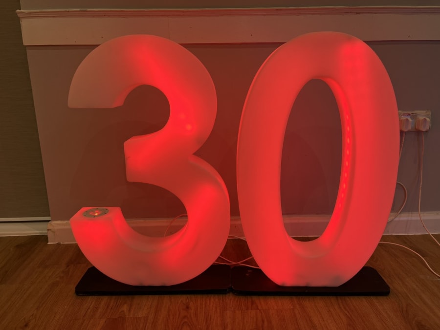 LED Light Up Number 30 for hire in Buckinghamshire, Berkshire, Middlesex and Oxfordshire.