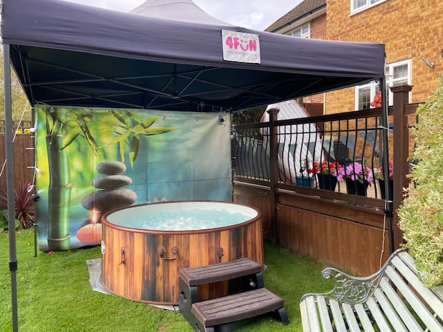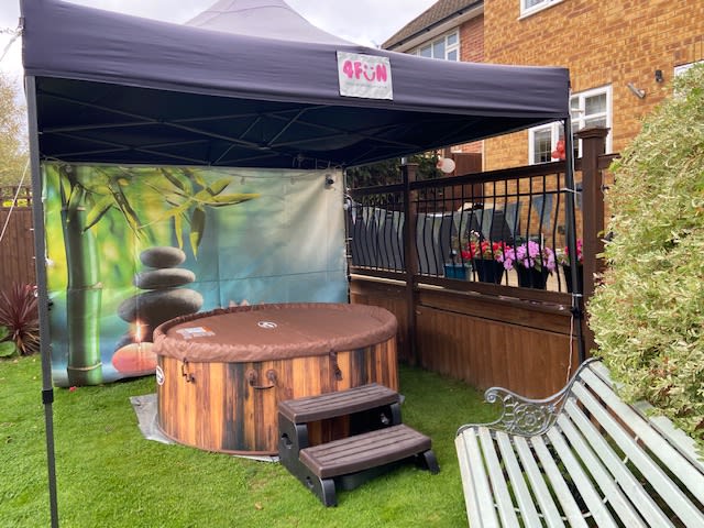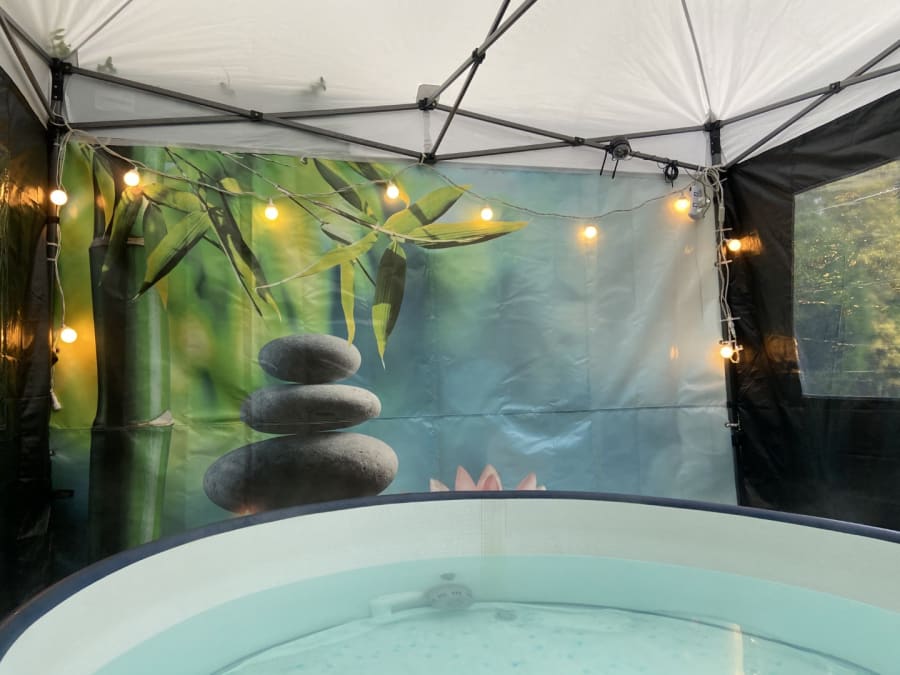 Zen Stones Relaxation Hot Tub and Gazebo Package for hire in Buckinghamshire, Berkshire, Middlesex, Oxfordshire.