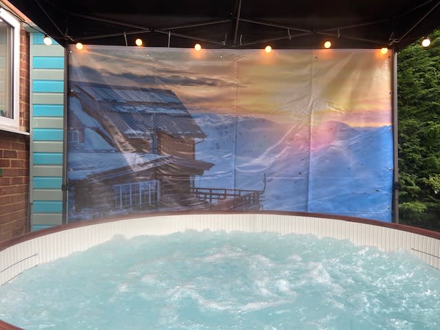 Ski Chalet Sunset Hot Tub and Gazebo Package for hire in Buckinghamshire, Berkshire, Middlesex, Oxfordshire.