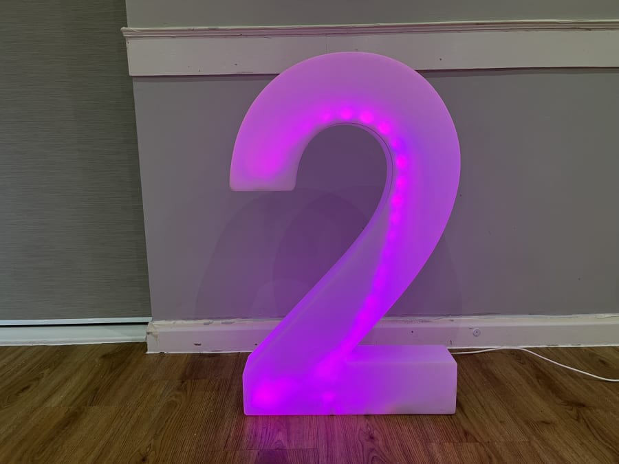 LED Light Up Number 2 for hire in Buckinghamshire, Berkshire, Middlesex and Oxfordshire.