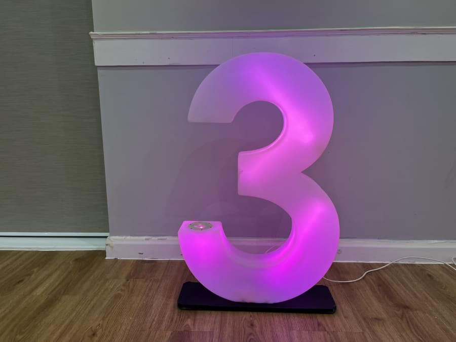 LED Light Up Number 3 for hire in Buckinghamshire, Berkshire, Middlesex and Oxfordshire.