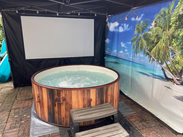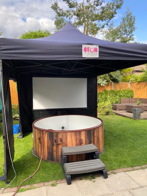 Hot Tub Cinema (STANDARD) with 3M x 3M Gazebo for hire in Buckinghamshire, Berkshire, Middlesex, Oxfordshire.