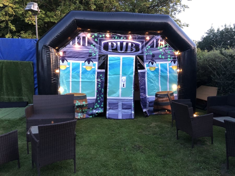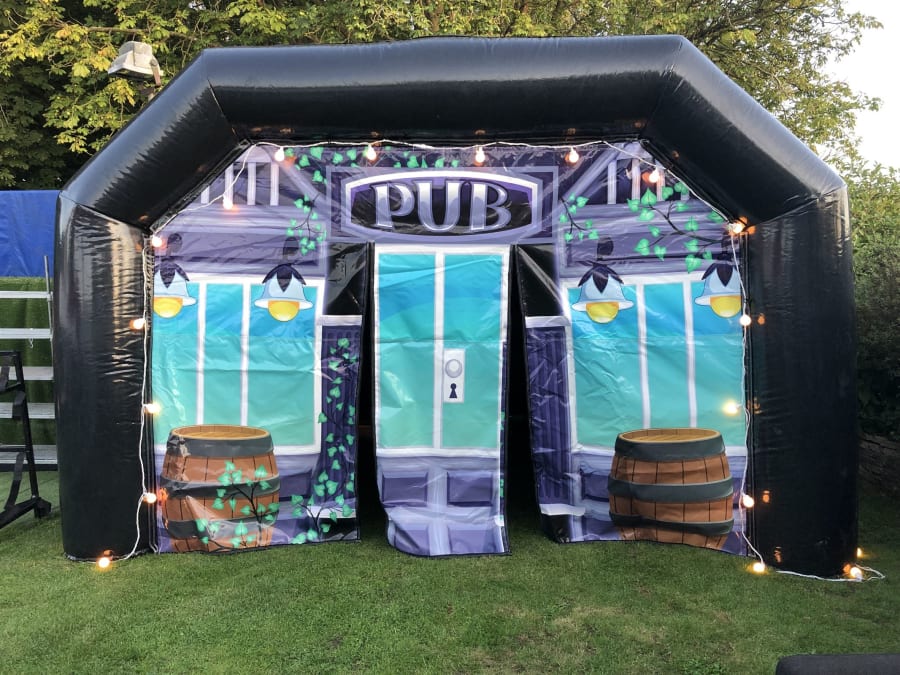 Inflatable Pub 15ft x 15ft and Large Bluetooth Speaker with Disco Lights for hire in Buckinghamshire, Berkshire, Middlesex and Oxfordshire.