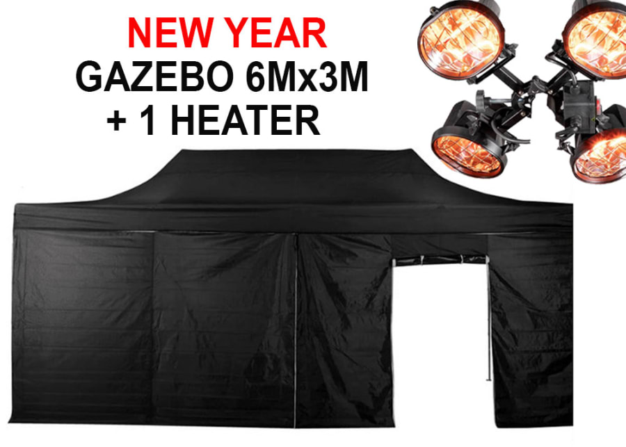 New Year Gazebo (BLACK) 6mx3m with Heater