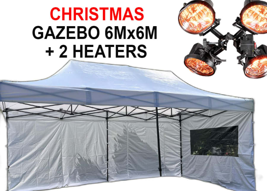 Christmas Gazebo (WHITE) 6m x 6m with 2 Heaters for hire in Buckinghamshire, Berkshire, Middlesex, Oxfordshire & more