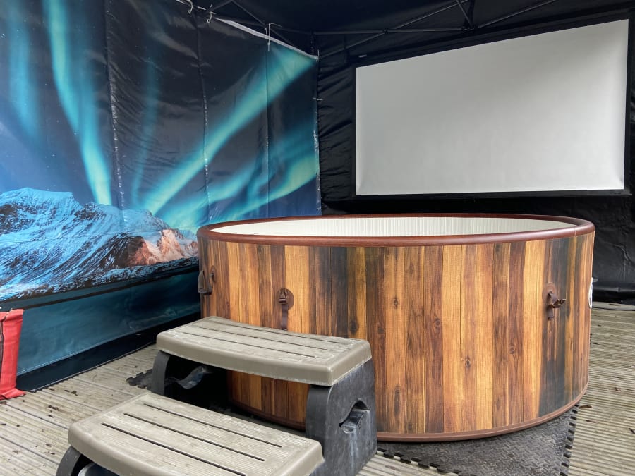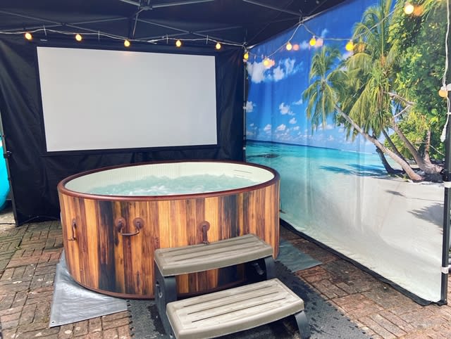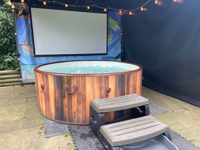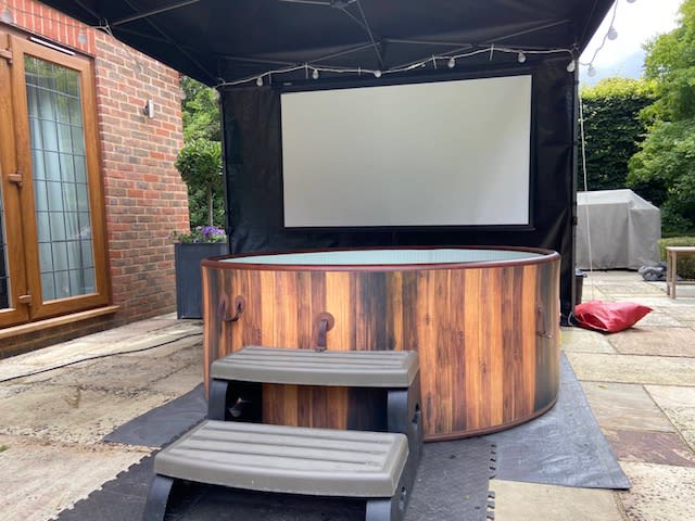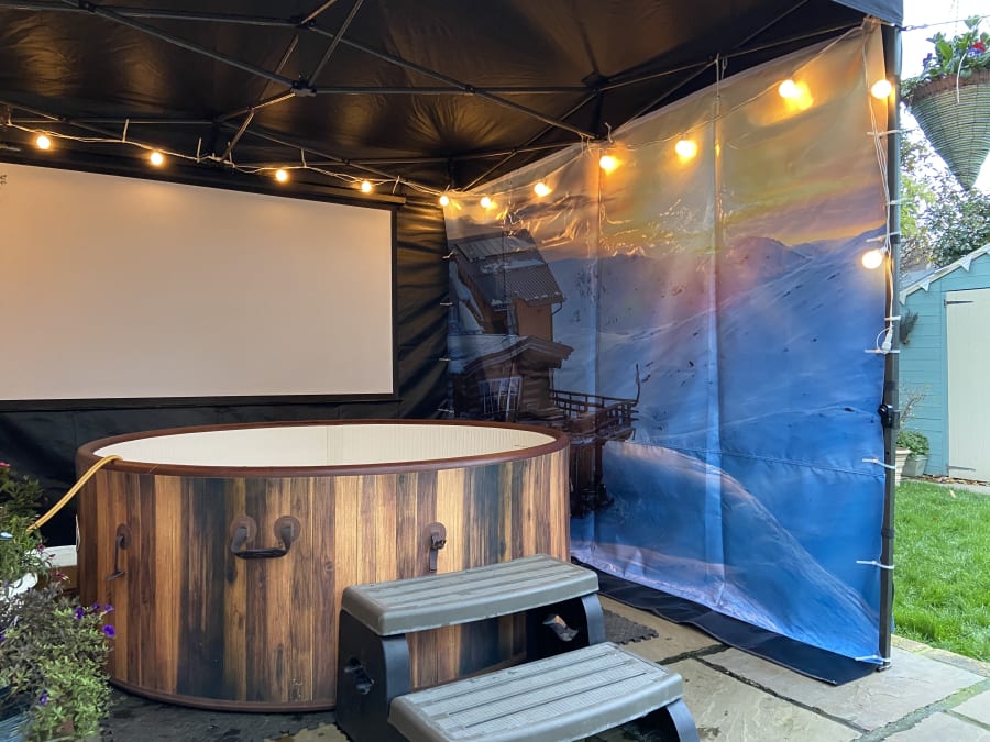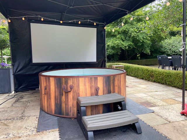Hot Tub Cinema (STANDARD) with 3M x 3M Gazebo for hire in Buckinghamshire, Berkshire, Middlesex, Oxfordshire.
