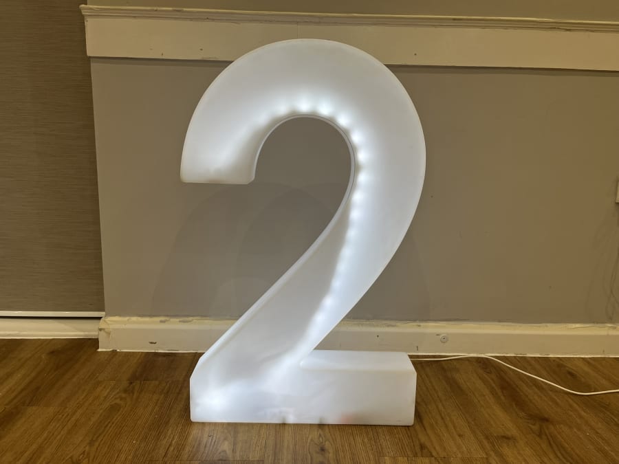 LED Light Up Number 2 for hire in Buckinghamshire, Berkshire, Middlesex and Oxfordshire.