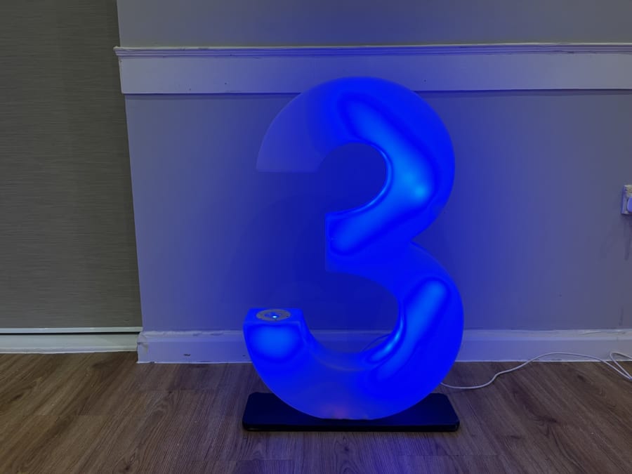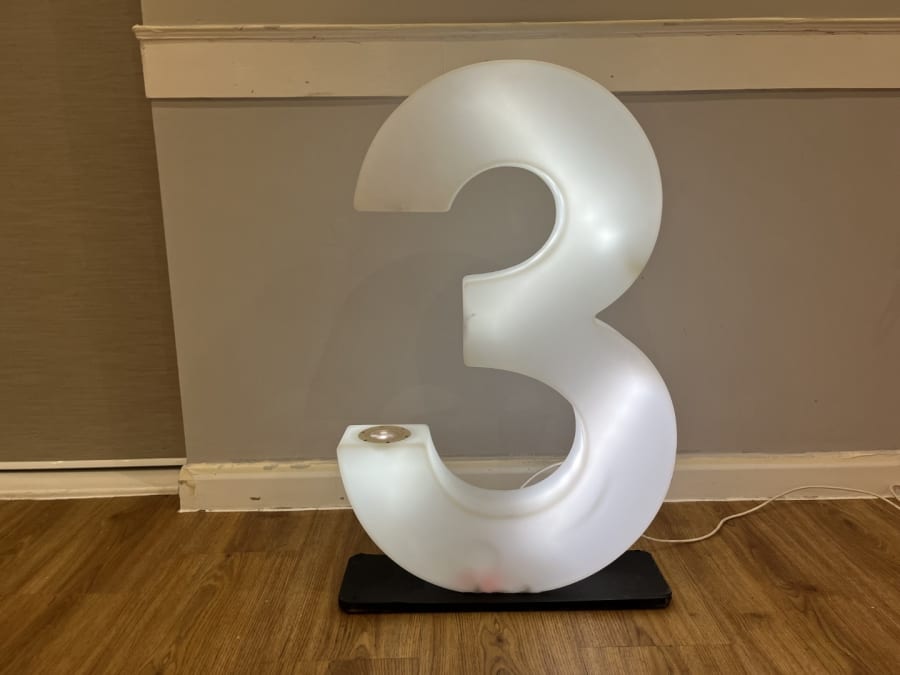 LED Light Up Number 3 for hire in Buckinghamshire, Berkshire, Middlesex and Oxfordshire.
