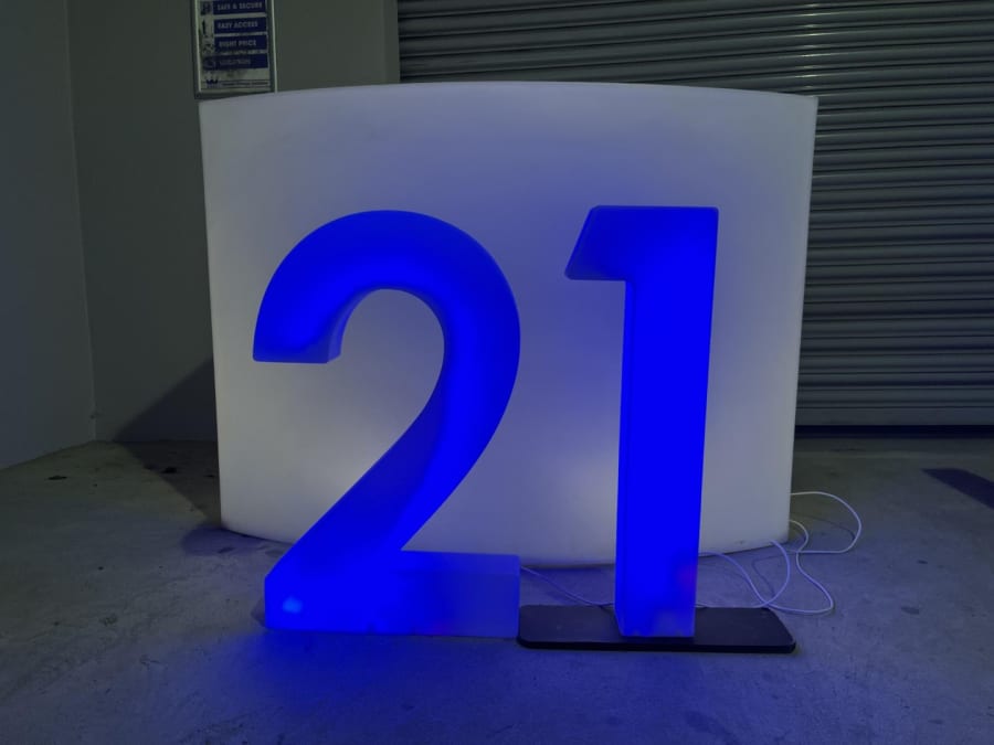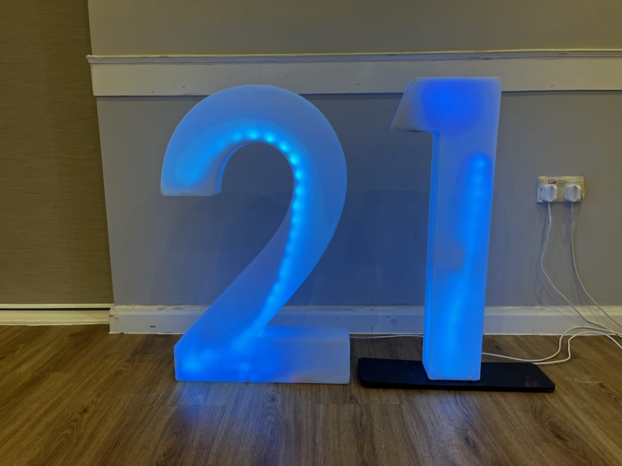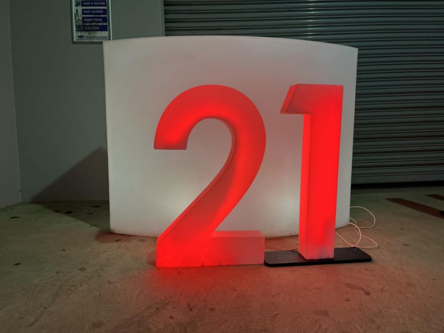 LED Light Up Number 21 for hire in Buckinghamshire, Berkshire, Middlesex and Oxfordshire.