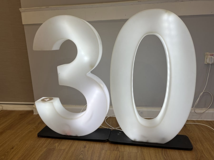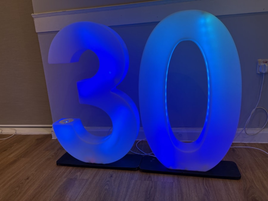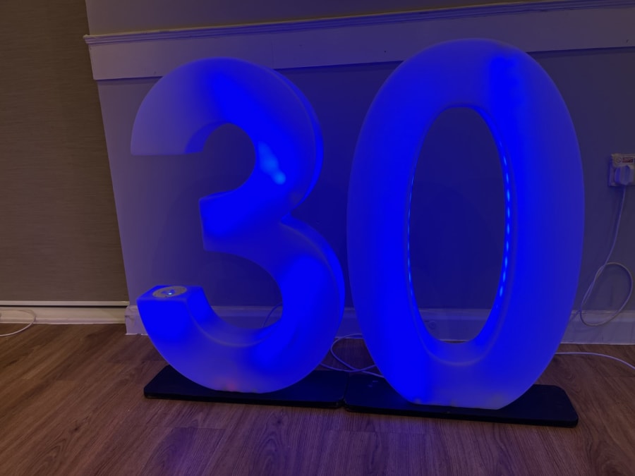 LED Light Up Number 30 for hire in Buckinghamshire, Berkshire, Middlesex and Oxfordshire.