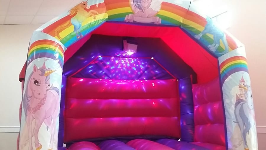 Unicorn Bouncy Castle 12ft x 15ft with Disco Lights and Music