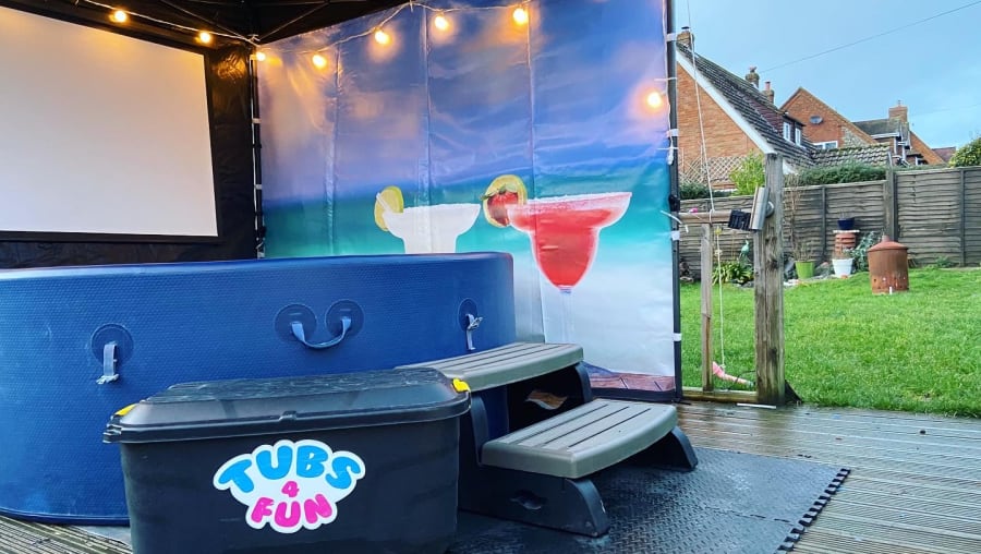 Martini Cocktails on the Beach Hot Tub and Gazebo Package for hire in Buckinghamshire, Berkshire, Middlesex, Oxfordshire.