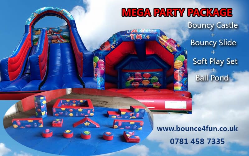 Party Time Bouncy Castle, Inflatable Slide and Soft Play Package