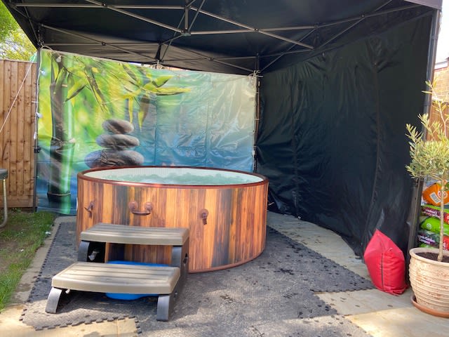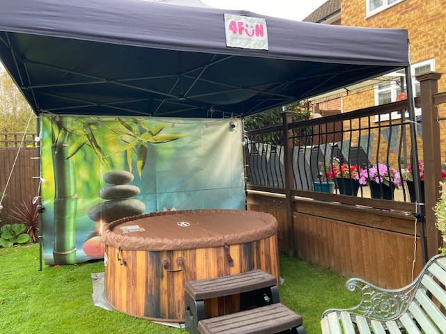 Zen Stones Relaxation Hot Tub and Gazebo Package for hire in Buckinghamshire, Berkshire, Middlesex, Oxfordshire.
