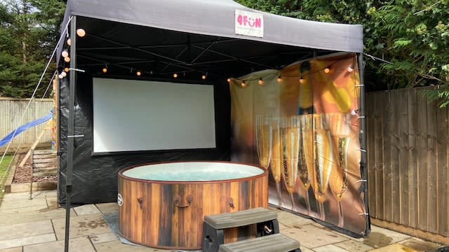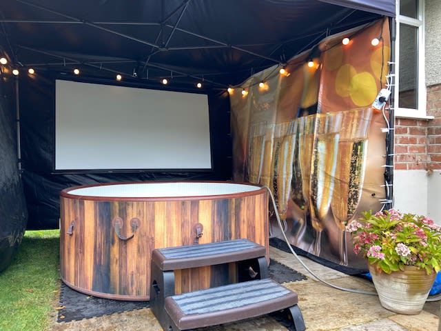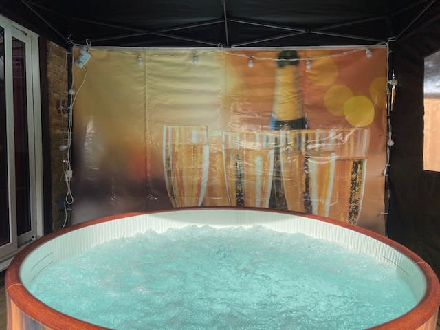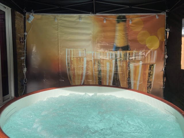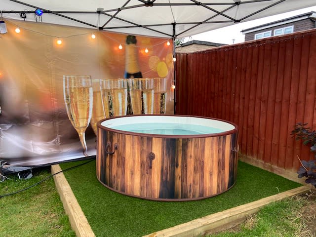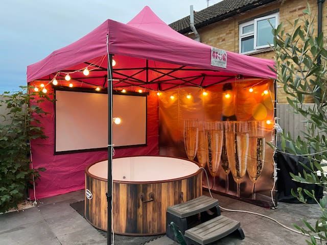 Champagne Celebration Hot Tub and Gazebo Package for hire in Buckinghamshire, Berkshire, Middlesex, Oxfordshire.