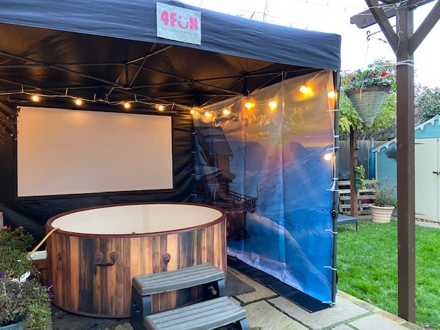 Ski Chalet Sunset Hot Tub and Gazebo Package for hire in Buckinghamshire, Berkshire, Middlesex, Oxfordshire.