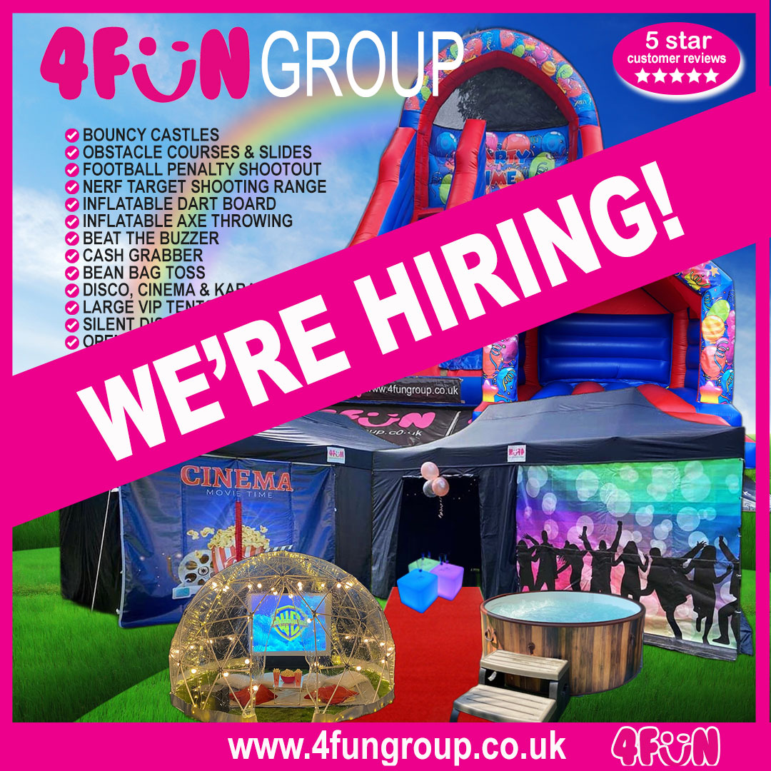 4FUN Group is a one stop shop for fun filled parties and events for all generations with over 200 Five Star Google reviews and 100% customer satisfaction guaranteed! Our set ups include bouncy castles, soft play, hot tubs, cinema and gaming, party tents, inflatable night clubs, karaoke, igloo domes, bell tents, camping tents, gazebos, tables and chairs, audio visual equipment, games and much more!